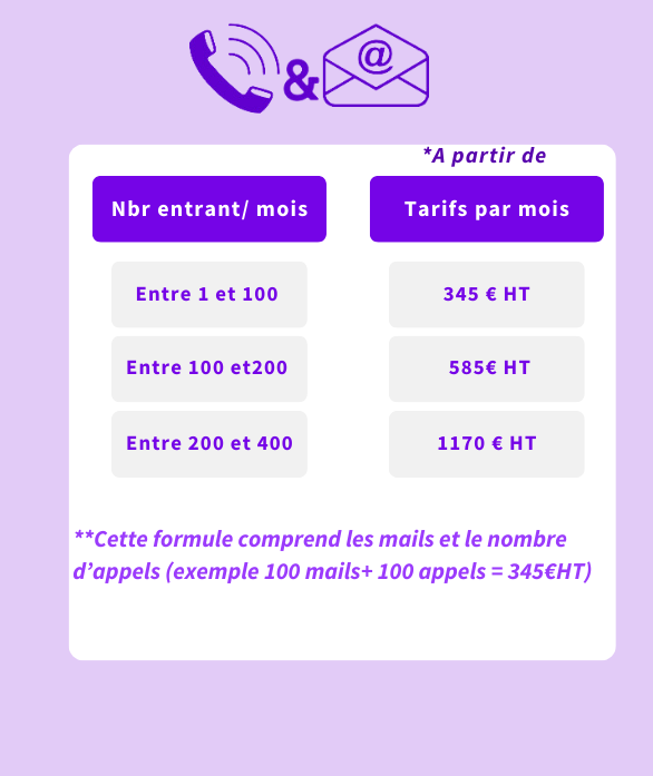 "Notre formule téléphone et e-mail pour une expérience client optimiser. Notre engagement est de répondre à vos attentes , en renforçant ainsi vos relations avec vos clients."